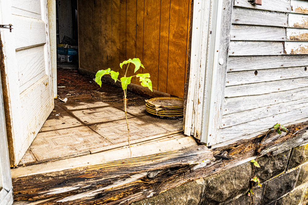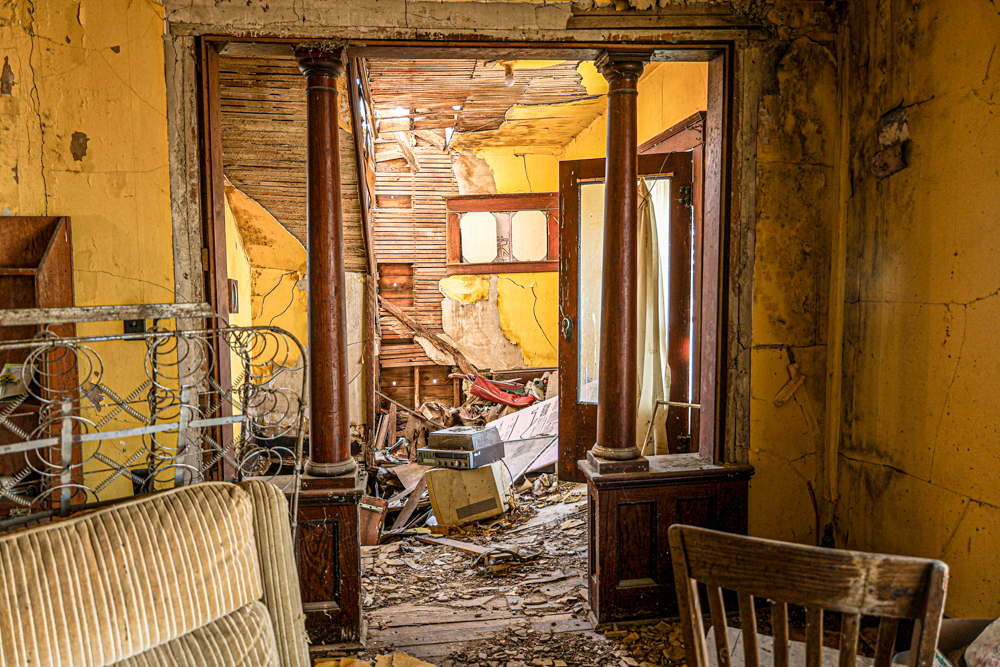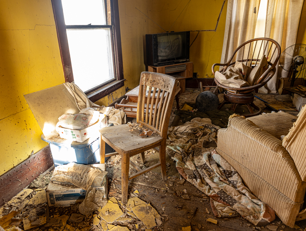 The grandfather built the house back in 1917 and lived there until the Great Depression took it away. Then, his son bought it back in 1949 and stayed on the farm until he passed away in 1953. His mom and the kids stayed until 1970, when she passed. The farm was empty for a few years, but the boys would visit a couple of times a month to check things out. Kenneth’s brother lived there for a couple of years before moving out, and the property was barely hanging on from 1975 to 1980. They finally turned off all the utilities, and the house slowly started to fall apart: windows broke, holes appeared in the roof, and floors caved in.