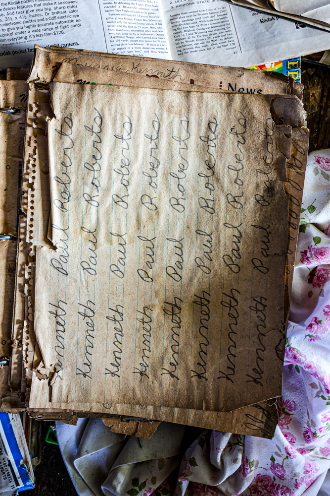 While exploring the inside of the house, I was struck by how much stuff was still there. It felt like I was unearthing a piece of history. Old toys, books, clothes, furniture, magazines, vinyl records, 8-track tapes, cassettes tapes, and even Kenneth’s old homework.